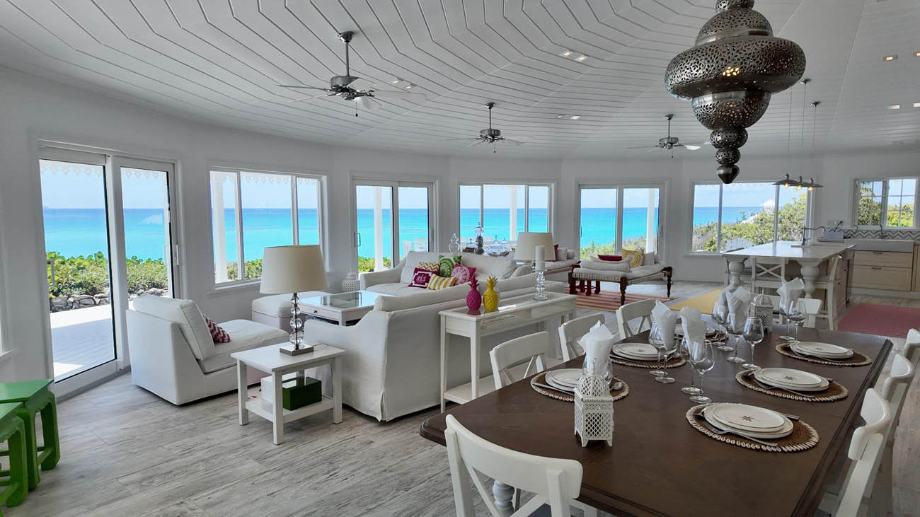 White Nights Two is a stunning 2018 Deltec oceanfront estate offering luxury, tranquility, and timeless Bahamian charm. With 215 feet of direct ocean frontage, its patented circular design provides engineered hurricane resistance and panoramic 180° views. Sunlight fills the open-plan kitchen, dining, and living areas, complemented by a dedicated TV room. The primary suite features breathtaking water views, a spa-inspired bath, and office nook, while two additional ensuite bedrooms offer comfort for family and guests. Curated pieces and décor from around the world make this home unique. Outdoors, enjoy a wraparound deck and direct sea access. A double garage, laundry, backup well, and modern infrastructure, including fiber internet and city power, ensure convenience. Like new and in pristine shape, White Nights Two is the perfect blend of elegance, durability, and serene island living.